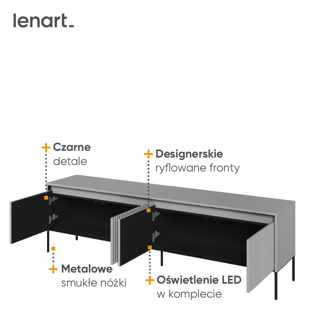 Szafka RTV z oświetleniem TREND TR-06 Lenart 193cm szara