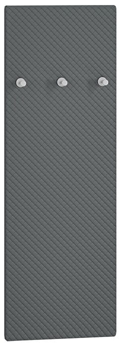 Hyga to nowoczesna kolekcja mebli do przedpokoju. Dzięki doborowi odpowiednich brył idealnie sprawdzi się zarówno w małym jak i dużym wnętrzu. Kontrastujące połączenie dekorów - sosny śnieżnej i antracytu - podkreśla charakter mebli i dodaje im lekkości. Szare, pikowane obicie wieszaka i siedziska dodaje meblom ponadczasowej elegancji oraz zapewnia wysoki komfort użytkowania.