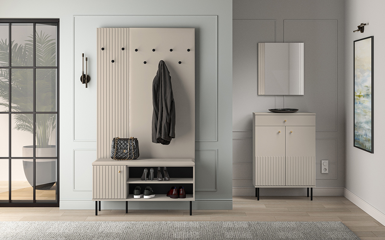 Wieszak Sophie 18 to mebel łączący klasyczne rozwiązania i nowoczesny design. Pomimo swojej prostej konstrukcji, będzie doskonałym dopełnieniem przedpokoju. Model został wyposażony w trzy czarne uchwyty na odzież wierzchnią. Sophie 18 to nie tylko praktyczne rozwiązanie do przedpokoju. Nasz mebel to synonim współczesnej elegancji. Delikatny, kaszmirowy dekor podkreśli wyjątkowy charakter Twojego wnętrza.