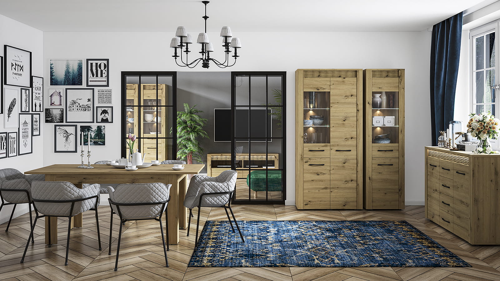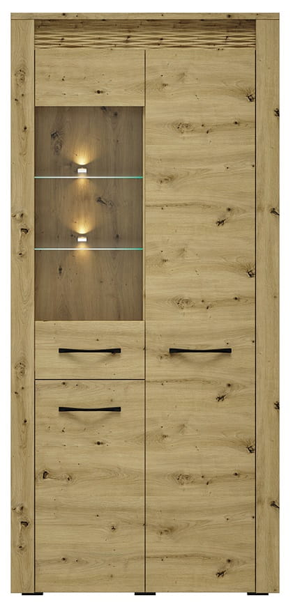 Nowoczesność inspirowana naturą, czyli starannie zaprojektowana kolekcja mebli Artis. Naturalny rysunek drewna, piękne usłojenie, wyraźne sęki podkreślają charakter mebla. W połączeniu z wyważoną oraz prostą stylistyką tworzą niebanalny duet, który odmieni każde wnętrze. Czarny, metalowy uchwyt świetnie kontrastuje z ciepłym dekorem dębu, a podświetlana, dekoracyjna ryfla doda Twojemu wnętrzu blasku i niepowtarzalnego klimatu.
